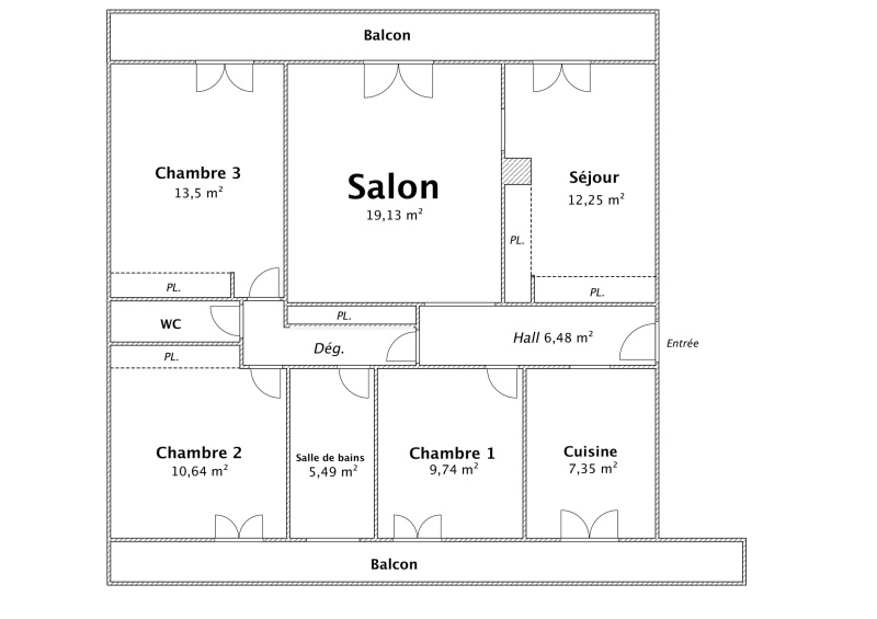 | Chambre n°3 | 0 | 13,50 m² | Parquet | Sud-est | Balcon |