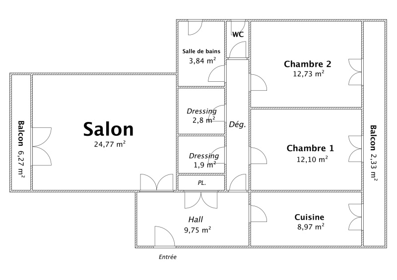 | Balcon | - | 6,27 m² | - | Sud-est | - |